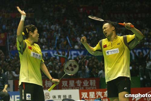中國隊今晚派出了與半決賽時完全相同的陣容,兩屆奧運會混雙金牌得主張軍/高崚再度出任“先鋒”,迎戰印尼組合諾瓦/納西爾。中國球員首局在十比六領先的大好形勢接連出現失誤,被對手逆轉,以十二比十五先失一局。接下來的比賽中國球員吸取首局失利的教訓,比較好地控制了場上局勢,比分一路領先,以十五比五和十五比八連勝兩局。