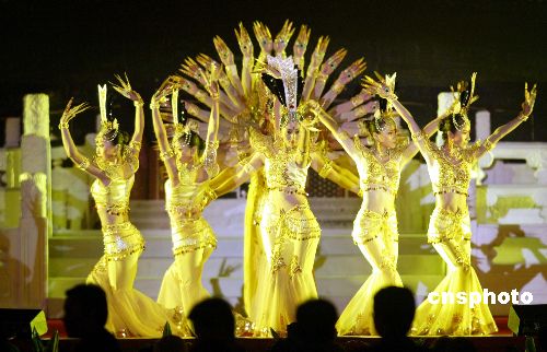 五月十六日晚,二○○五北京《財富》全球論壇在北京人民大會堂開幕,由聾啞人表演的舞蹈“千手觀音”贏得現(xiàn)場掌聲不斷。作者:廖文靜