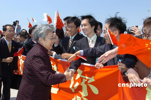 圖:吳儀抵日訪問 受到留學生熱烈歡迎