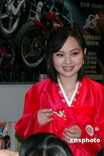 由朝鮮貿易省主辦的“第八屆平壤國際商品博覽會”五月十六日至十九日在朝鮮平壤三大革命展示館舉行,有來自世界各國的三百多家企業參展,這是朝鮮歷史上首次舉辦大規模的國際商務活動。圖為博覽會上的禮儀小姐。作者:涵喬