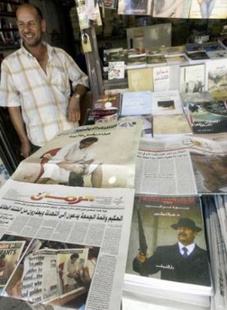 圖文:伊拉克報亭出售刊有薩達姆獄中照的報紙