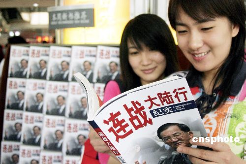 5月22日,由海峽兩岸出版交流中心研究部編輯,九州出版社出版的《連戰大陸行紀實》開始發售。據了解,此書以時間為經,以重大事件為緯,對連戰此次的大陸之行進行了全面的梳理和提煉。該書在忠實、客觀的記錄本次事件的同時,也收錄了多方的反應,評論及相關的背景和花絮。作者:陳曉根