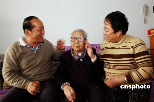 一九九一年回到日本居住的日本遺孤杜冬梅,因不忍中國的養母在長春無人照顧,現在又回到了中國養母身邊。她說,我當時遺留在中國時曾患有淋巴結核,下巴淌著膿,是養父母收養我并給我一次次治病,后來又供我上了大學,沒有養父母對我的愛,也許我早就死了。據資料記載,在中國東北日本侵華戰爭后留下了大約五千名日本遺孤。圖為杜冬梅和丈夫與養母于世芳聊天逗笑。作者:王麗南