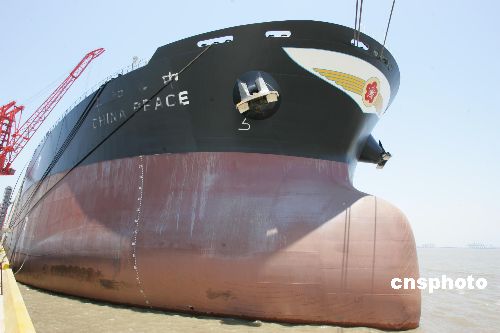 五月二十六日,由祖國大陸為臺灣打造的第一輪“中華和平”號在上海外高橋船廠整裝待發。計劃將于六月十日交付使用。據悉,“中華和平”號是目前中國建造的最大噸位散貨船,船東為臺灣航運界的翹楚——中國航運股份有限公司董事長彭蔭剛。作者:湯彥俊