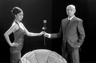 5月30日下午,記者走進煤礦文工團的安源小劇場,只見陶虹身穿一件紫紅色的露肩晚禮服,徐崢則穿著一身筆挺的西服。他們兩人分別站在一個紅色布藝沙發的兩側,頭頂上是大量的聚光燈。劇場里的陣勢和時尚節目的拍攝別無二致?墒牵蘸纭⑿鞃槄s是在為他們二人主演的戲劇《最后一個情圣》拍攝電視宣傳片。