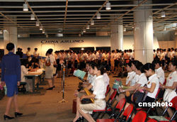 中華航空位于臺北松山機場的空服訓練部今天一清早就匯聚了眾多白領裝束的應聘者,她們大多是應屆的大學生,其中還有八十多名碩士。