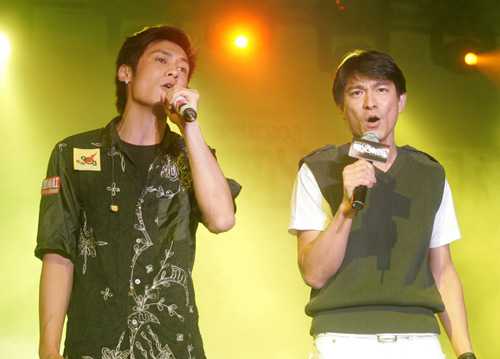 話說當所有嘉賓相繼出場后,現場奏起《無間道》主題曲,“樂仔”一心準備獨唱,怎料發覺臺下觀眾嘩聲四起、尖叫聲不絕于耳,回頭一望,才驚覺“華仔”在一角突然現身。“樂仔”既愕然又驚喜,一副無法置信表情,甚至連說話也不會講,即時雙腳跪地;“華仔”見狀也上前跪下扶起“樂仔”。一曲既終,“樂仔”再度向“華仔”作九十度鞠躬致謝,“華仔”則鼓勵他道:“這里只是你的開始,下次紅館見。”