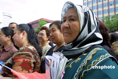 六月七日是全國普通高校招生考試第一天,在烏魯木齊一民族考點外,一位維吾爾族大娘手持高考招生資料,等待自己的孩子順利完成第一門考試。據悉,二零零五年新疆報考普通高校考生達十二點八萬人,其中少數民族考生近五萬人,再創歷史新高。作者:劉新