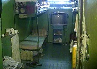 第13教養(yǎng)所以前每天點(diǎn)3次名,現(xiàn)在改為2次,犯人此時(shí)可以放風(fēng)。好在不強(qiáng)迫犯人唱歌。那里有一個(gè)很好的俱樂(lè)部,是由犯人親手建造的。如果霍多爾科夫斯基在此關(guān)押,想讓他吃點(diǎn)苦頭的話,他就會(huì)在這個(gè)俱樂(lè)部里干活,擦地板、門(mén)窗。自己的份飯要在餐廳里吃。這是一個(gè)示范性機(jī)構(gòu),新犯人進(jìn)來(lái)時(shí),所有人什么東西都可以帶,住處會(huì)被提前打掃。這里曾經(jīng)召開(kāi)過(guò)全俄羅斯檢察官會(huì)議,上面經(jīng)常有人來(lái)檢查。