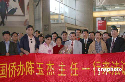 國務院僑辦主任陳玉杰一行,當地時間六月八日到達巴黎,受到當地華僑的熱烈歡迎。作者:鐘誠