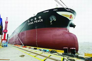 “中華和平”號是外高橋船廠建造的第18艘巨輪,而它能擁有“中國第一船廠”美譽,與中國設計、中國制造的好望角船型不無關系:目前,上海外高橋造船公司已先后承接好望角型散貨船43艘共750多萬噸,全球四分之三的好望角船型訂單落入上海外高橋造船公司囊中。同時,好望角船型是我國目前建造的最大噸位散貨船。
