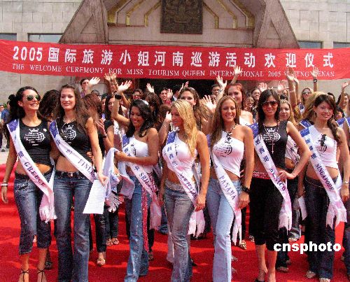 | “二OO五國際旅游小姐中國之旅”河南巡游團(tuán)暢游中原之行,六月十一日上午在鄭州正式“起程”,河南省政府在河南博物院廣場舉行儀式,歡迎佳麗們的到來。該團(tuán)由七十五個(gè)國家和地區(qū)的七十五名旅游形象大使和二十多個(gè)境內(nèi)外媒體組成,從當(dāng)日起,七十五名旅游大使的“美麗”腳步將暢游錦繡中原,感受黃河風(fēng)情,體驗(yàn)中國古老燦爛歷史。圖為“起程”儀式。作者:胡珂
