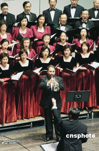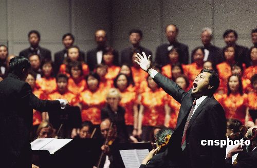 六月十二日,為紀念抗日戰爭勝利六十周年,美國硅谷愛樂合唱團,青青合唱團,圣荷西華人合唱團,圣荷西知青合唱團在美西圣荷西藝術演出中心聯合演出《黃河大合唱》。作者:陳鋼