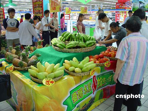 6月15日上午八點,首批通過常規貿易方式登陸長沙的臺灣水果在星城銷售。長沙市民在長沙就可以買到土生土長的臺灣水果,圖為臺灣水果一上市就受到長沙消費者的熱捧。作者:李思之