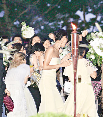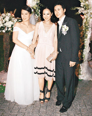 新娘子Stephanie平日為旗下藝人做慣幕后軍師,前晚輪到她當主角,她喜孜孜地說:“婚宴請了二百五十人,擺了二十五桌,Gigi送手鐲、莫文蔚送耳環、蔣怡送飾物、楊采妮送的好有心思,但我不會講是什么。最開心天心都由臺灣來香港,楊采妮更陪我挑選結婚戒指,Gigi尋晚陪著我整晚,幫我想問題考新郎。拋花球時我想另外一個圈外人接到,又想天心接到,因為她同男友一齊來。”