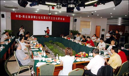 中新蘇州網(wǎng)6月20日電 (姚靜)周莊旅游博士論壇暨沈萬(wàn)三文化研討會(huì)昨天下午在周莊召開(kāi),旅游博士、沈萬(wàn)三研究專(zhuān)家以及研究會(huì)會(huì)員、旅行社等40余人參加了會(huì)議。
