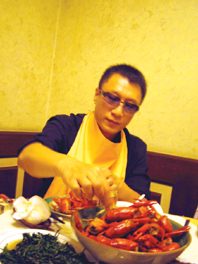 孫紅雷在南京拍片多次,就愛吃南京的大龍蝦,19日中午,特地趕去一家飯店吃龍蝦,開吃前他是談笑風生,龍蝦一上桌,他就一言不發,如入無人之境。眨眼功夫,一盤光了,第二盤剛上,我們以為他會說不要了,哪知孫紅雷竟說“再來兩盤!”看他吃得那么香,一桌人都樂壞了,記者在一邊悄悄估算了一下,孫紅雷這頓一人共吃了四盤90多只龍蝦。完了還執意掏錢買了兩大包,說要帶回北京去。