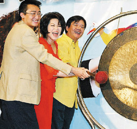 昨天蔡琴當(dāng)起了媒婆,帥哥律師謝震武擔(dān)任見證人,見證果陀劇團與大陸上海星世代娛樂公司結(jié)緣。蔡琴與果陀藝術(shù)總監(jiān)梁志民,還有上海星世代娛樂董事長徐毅簽約,將“跑路天使”引進(jìn)內(nèi)地,新名稱“跑路救天使”引起大陸一陣狂熱,北京、上海共5場演出,目前已經(jīng)開放售票,據(jù)了解,票房比蔡琴去年的個唱還暢銷,而4萬人次的演出也將挑戰(zhàn)蔡琴的身體狀況。蔡琴表示,由于視力不佳,她無法與舞臺上的其它演員直接對戲,所以必須彩排更多次,一個人不斷重復(fù)練習(xí),將所有的走位及對話統(tǒng)統(tǒng)都背起來,比起一般正常情況下演出,更加辛苦,蔡琴開玩笑說:“我的票價要調(diào)漲啦!”