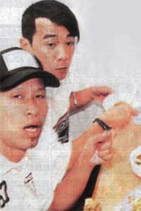 當(dāng)時(shí),記者上前拍照,婉婉立即低頭,小春見(jiàn)狀即喝罵:“不要拍呀!”繼而便拿起前面的粿條潑向記者,記者離開(kāi)該店后,婉婉立即與小春耳語(yǔ)一番,似是勸他不要?jiǎng)优胄r(shí)后,眾人分別離開(kāi)。