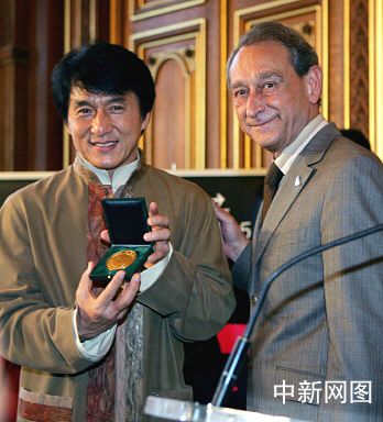 中新網(wǎng)6月29日電 據(jù)光華日?qǐng)?bào)報(bào)道,法國巴黎市長德拉諾今天在市政廳頒與成龍巴黎市榮譽(yù)勛章,表彰這位香港動(dòng)作巨星的演藝成就及他的笑容。