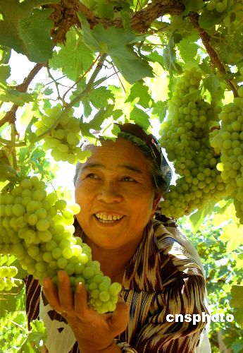 6月30日,吐魯番市亞爾鄉(xiāng)戈壁村葡農依色拉提·吾秀爾在采摘成熟的葡萄。素有“葡萄王國”之稱的新疆吐魯番,自6月下旬以來,種植的50萬畝無核白、紅葡萄、瑪奶子、翡翠綠、黑葡萄、玫瑰香、白布瑞克等500多個優(yōu)良品種的葡萄相繼成熟并上市。據了解,2003年吐魯番葡萄獲得國家原產地域產品保護。作者:劉健4509