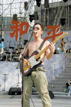 中新網(wǎng)7月1日電 今晚,萬眾矚目的《和平的天空》搖滾演唱會就要在工人體育場火爆上演了。據(jù)北京娛樂信報(bào)報(bào)道,昨天下午,北京的天氣酷熱無比,可是工人體育場露天舞臺上的氣氛卻比天氣還要熱。崔健、唐朝、黑豹、黃貫中等參演樂隊(duì)和歌手在這里提前進(jìn)行了彩排和預(yù)熱。