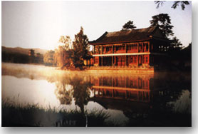 避暑山莊造園體現出“集天下景色于一園,移天縮地于一方”的帝王思想。形貌如中華成一統,兼具南秀北雄之美。避暑山莊始建于1703年,直至1792年歷時89年建成124組建筑,其中皇帝命名的有七十二景,總建筑面積約10萬余平方米。