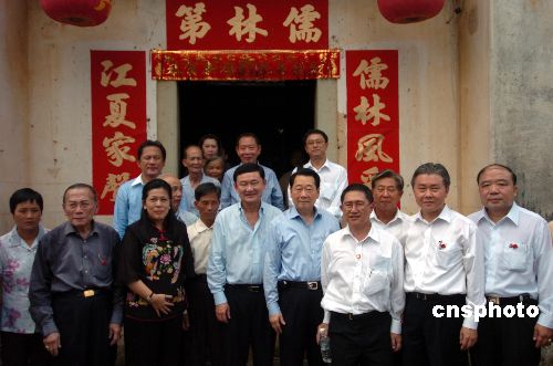 泰國總理他信前往廣東省梅州市梅教村,探訪其母親當年居住過的祖屋,并與隨行人員和家鄉父老鄉親在祖屋前合影。作者:柯小軍