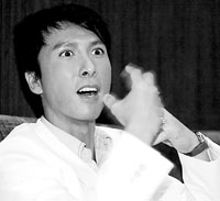 中新網(wǎng)7月4日電 據(jù)北京晨報報道,昨天晚上,七劍中最鋒利的“由龍劍”——甄子丹來到北京,接受京城媒體的采訪。甄子丹身著白色西裝,用粵式普通話跟在場記者打招呼。在現(xiàn)場,甄子丹和記者聊起了《七劍》、武功和功夫片。不同于電影中一貫的冷酷和面無表情,閑聊時的甄子丹不時露出笑容,顯得很是親切。