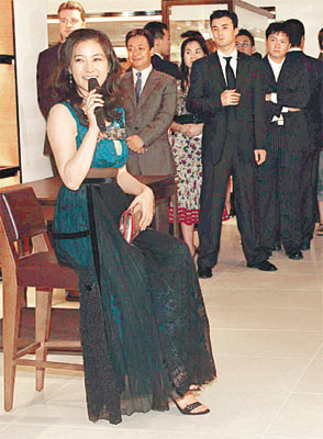 韓國首爾的LV專門店昨日正式舉行開幕,大會特別邀得“LV之友”兼近期港人風頭強勁的李英愛出席,吸引了過百傳媒前來采訪。穿上墨綠色及黑色連身長裙的愛姐,在十名保安護航下出場,更親切地與在場人士微笑揮手,并與品牌亞太區總裁Francois Delage及韓國行政總裁Hyun Ouk Cho合照留念。