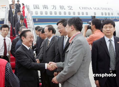 新黨主席郁慕明率領的臺灣新黨“民族之旅”訪問團七月八日下午抵達大連,在機場受到當地臺商代表的熱情迎接。作者:毛建軍