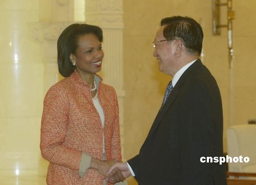 中新網(wǎng)7月10日電 國(guó)務(wù)委員唐家璇10日在人民大會(huì)堂會(huì)見了來(lái)訪的美國(guó)國(guó)務(wù)卿賴斯。雙方就朝鮮半島核問(wèn)題交換了意見。