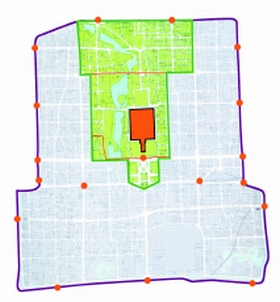 而草案一的緩沖區范圍實為原皇城范圍:南起長安街,北至平安大街;東起南、北河沿,西至府右大街和西黃城根北大街。該區域目前控制較好,并已做出保護規劃,但范圍太小,難以達到聯合國教科文組織的保護要求。
