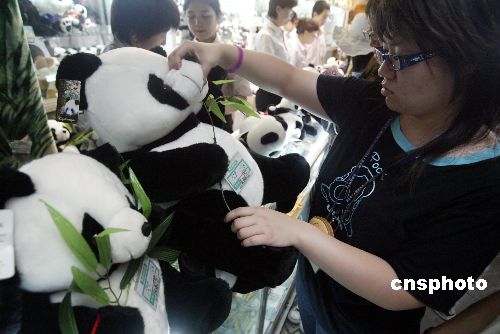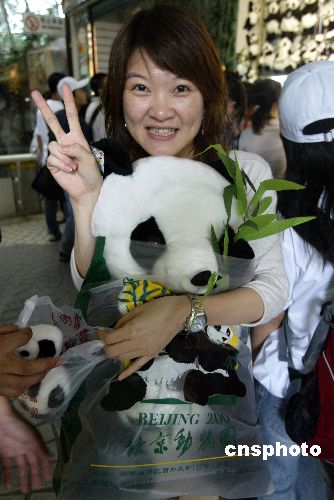 臺灣東海大學(xué)的李姓女生進了熊貓館后,迫不及待地向熊貓房的玻璃罩跑去,手里拿著照相機拍個不停。“以前只是在電視上看到熊貓,這里的熊貓顯得很懶,而且茸毛有點臟。”她希望管理員能每天給熊貓洗澡。臨走時,她還選購了一只玩具熊貓,并告訴記者,要把玩具擺在床前,每天都能看到。