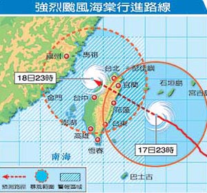 中新網7月18日電 根據島內氣象部門18日清晨5時30分的最新臺風消息,強烈臺風“海棠”暴風圈已籠罩臺灣上空,臺風中心今日上午將在花蓮北部登陸。