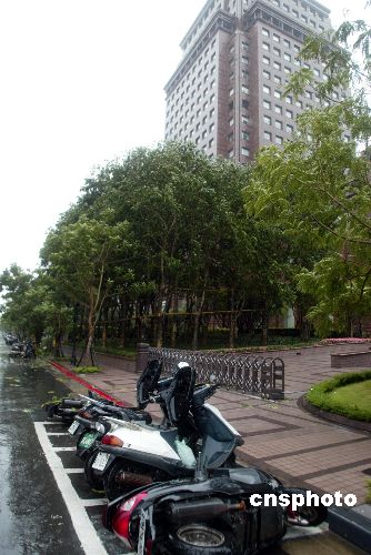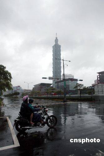 臺風籠罩下的臺北空曠的街道偶爾有摩托車經過