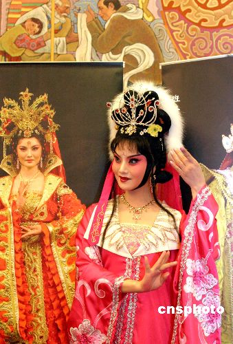 | 中國京劇院與西藏自治區藏劇團聯合創辦演出的京劇、藏戲《文成公主》,擬于八月二十八日在拉薩舉行的西藏自治區成立四十周年慶典活動中首演。藏戲《文成公主》作為八大經典藏劇之一,早已享譽劇壇。此次藏漢聯手創排《文成公主》,將在注重京劇、藏戲美學特征的基礎上,強調兩種戲曲藝術的兼顧與融合,并賦予作品新的時代精神。圖為七月十八日在人民大會堂舉辦的京劇、藏戲《文成公主》新聞發布會上文成公主的扮演者鄧敏正在表演該劇的精彩片段。作者:張勤