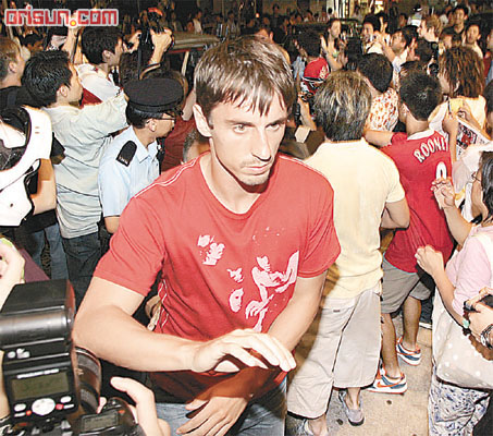 前晚十一時半,球星開始出動夜店,各球星包括里奧·費迪南德,弗萊徹,魯尼,范尼斯特魯伊,西爾維斯特,阿蘭·史密斯,羅西,薩哈等在保安陪同下,浩浩蕩蕩抵達(dá)中環(huán)Kee Club,現(xiàn)場早有近百名球迷守候,加里·內(nèi)維爾還貪玩搞記者鏡頭,致一名記者跌倒,令隨后的斯科爾斯幾乎踩到記者身上,因場面混亂,要出動十多名警員到場維持秩序。
