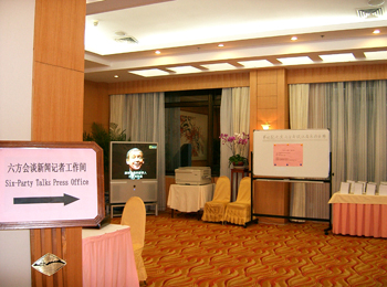 中新網7月25日電 據外交部網站消息,關于朝鮮半島核問題的第四輪北京六方會談定于7月26日在釣魚臺國賓館舉行。國內外媒體高度關注,數百名中外記者報名參加采訪。作為東道主,中方沿用前三輪會談的作法,在毗鄰會場的釣魚臺大酒店設立新聞中心,對外發布有關會談的各種信息,并接受電話問詢。