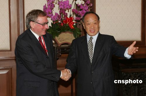 中國外交部長李肇星會見并宴請前來出席朝核問題六方會談的韓國外交通商部次官補宋旻淳。作者:毛建軍