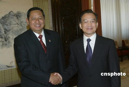 七月二十八日,中國國務院總理溫家寶在北京中南海會見來訪的印尼總統蘇希洛。作者:史利