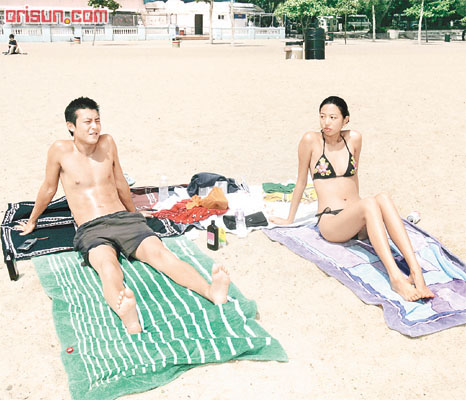 Edison與女伴顯得頗熟絡(luò),二人躺于大毛巾上邊曬太陽(yáng)邊聊天,雖然Edison在沙灘上極為矚目,惹來(lái)很多泳客眼望望,不過(guò)未見(jiàn)有人騷擾他與女伴。曬至中途,Edison拿出太陽(yáng)油,但他未有邀請(qǐng)身邊女伴幫手,只獨(dú)力為自己搽油,搽妥太陽(yáng)油后,Edison撇下女伴下水,浸水十余分鐘才上岸,繼續(xù)與女伴聊天。此時(shí)Edison發(fā)現(xiàn)有記者拍照,不知是否有美相陪心情大好,表現(xiàn)大方任意拍。