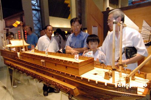 為紀念鄭和下西洋六百周年,29日,澳門海事博物館舉辦“海上皇朝-紀念鄭和下西洋六百周年”專題展覽,過透展覽觀眾可了解更多有關鄭和下西洋的事跡外,亦可看到中國多個朝代各具特色的船只復原模型。作者:粱永強
