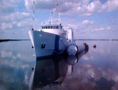 美國專船今天已將發現號助推火箭從大西洋收回。(NASA圖片)