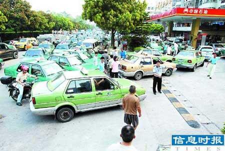 隨后記者來到了林和西橫路泛城加油站。但負責人和普通工人都拒絕記者采訪,說沒有上頭的通知,他們不會接受任何采訪。不過記者最后通過出租車司機了解到,此加油站90#油已不多。果然,5點30分左右,記者得到確切消息,此加油站90#油售罄。在黃埔大道員村加油站、農林下路加油站、先烈中路BP加油站、敦和路敦和加油站都無油可加;黃埔大道東郊加油站和珠江中穗加油站只有97#油可加,一些出租車只得忍痛加97#油了;中山大道東安加油站、工業大道新裕加油站只有93#油可加;新港西路銀海加油站只有90#油出售,但已吃緊;花地大道花地灣加油站93#油已售罄,90#、97#油也所剩不多。