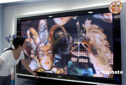 | 八月四日,一款標(biāo)價(jià)為一百萬(wàn)元人民幣的等離子電視被當(dāng)作“鎮(zhèn)店之寶”落戶在北京國(guó)美電器新開張的三星數(shù)碼體驗(yàn)館中。據(jù)介紹,這臺(tái)八十英寸的超大屏幕等離子電視是目前世界上已投入批量生產(chǎn)的最大的等離子電視,目前全北京僅此一臺(tái)。作者:韓藝冰