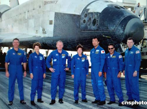中新社北京八月九日電 北京時間八月九日二十點十二分,美國發(fā)現(xiàn)號航天飛機(jī)在經(jīng)過十四天太空之旅后成功降落在愛德華茲空軍基地。