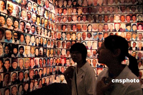 《12.13——侵華日軍南京大屠殺史實(shí)展》八月十日在北京開幕。該展作為中國人民抗日戰(zhàn)爭暨世界反法西斯戰(zhàn)爭勝利六十周年紀(jì)念活動(dòng)的重要組成部分,以翔實(shí)的史料和豐富的文物向觀眾展示那段不容忘卻的歷史,以表達(dá)愛國、正義、和平的主題。圖為南京大屠殺幸存者照片。作者:徐曦弋