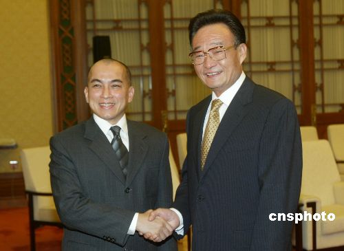 圖:吳邦國會見柬埔寨國王西哈莫尼