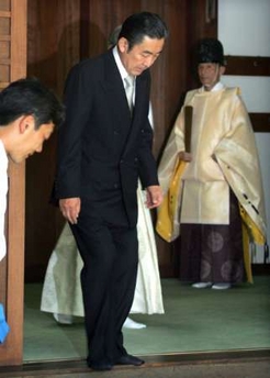 日本內閣的經濟產業大臣中川昭一參拜靖國神社